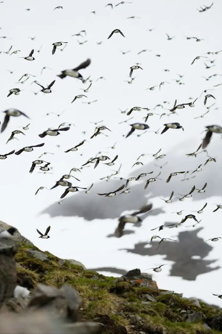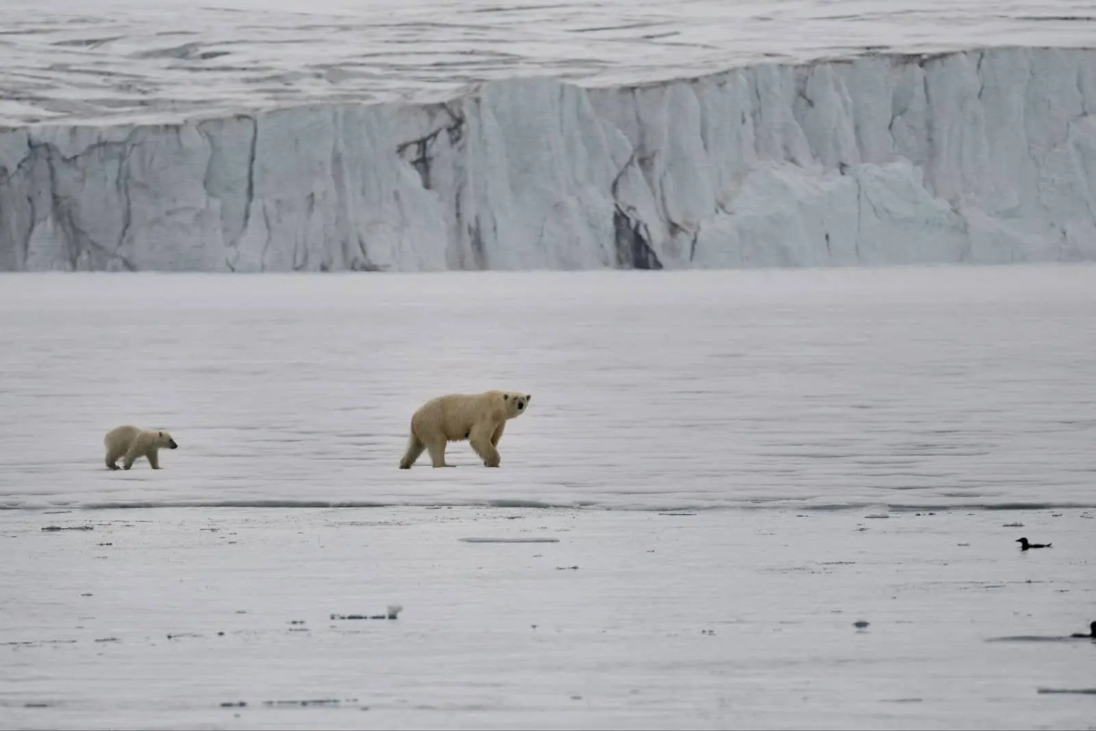 After observing several minke whales and puffins, we were lucky enough to encounter a polar bear family from the boat (luckily from a distance): a mother on alert and her two clumsy cubs walking on the ice. The encounter reminded us of their power and just how small and far from home we are in these regions where nature remains in control.