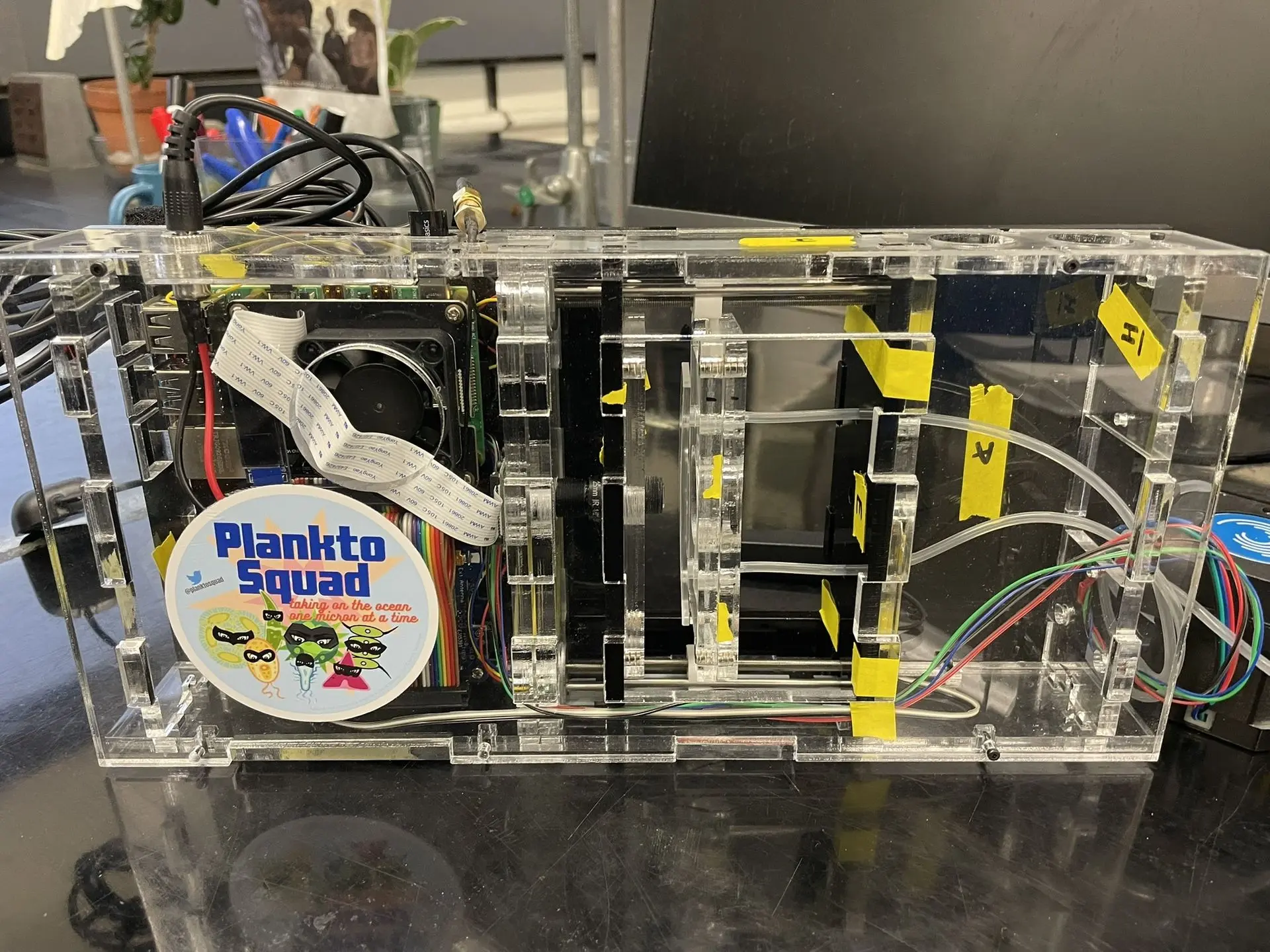 While completing his PhD, Loay formed a small group and got funding from the university and other sources. With that support, they built three early Planktoscopes. The team called themselves the PlanktoSquad and the very first unit was affectionately named Planky.